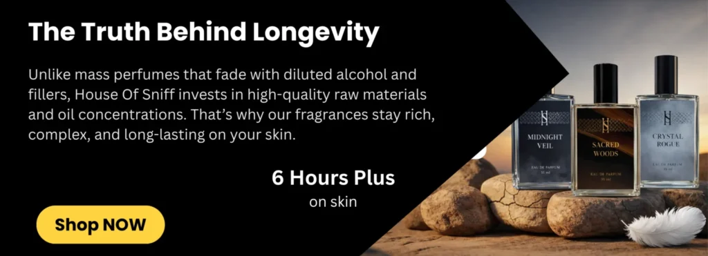 Unlike mass perfumes that fade with diluted alcohol and fillers, House Of Sniff invests in high-quality raw materials and oil concentrations. That’s why our fragrances stay rich, complex, and long-lasting on your skin.